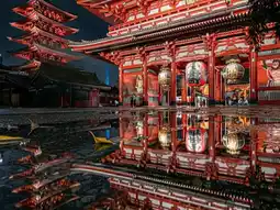 Visitors enter through the Kaminarimon and walk down Nakamise Street, a lively shopping avenue lined with stalls selling traditional snacks, souvenirs, and crafts. This street itself offers a charming glimpse into Japan’s past with its colorful shops and festive atmosphere.