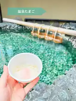 📍 Kusatsu Glass Warehouse Onsen Eggs When you purchase them, they will serve you eggs that have been bathed in the hot spring on the spot🥚The freshly made, warm onsen eggs are gooey and delicious🤩