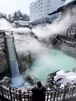 When it comes to hot springs in Japan, you can't miss the famous Kusatsu Onsen. It's a hot spring destination I've always wanted to visit. When I arrived, there was snow on the ground, and the cold weather made the hot spring atmosphere even more enjoyable. The steam and heat rising from the hot spring in the central plaza made me feel warm and cozy. It's also a great spot for taking photos. There are many small shops around selling various items and souvenirs, as well as many delicious eateries. It would be even better if you could soak in the hot springs. This place is perfect for a leisurely stroll and exploration.