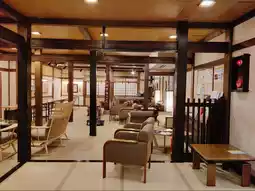 The hotel is a three-story wooden structure. It is a local landmark and the filming location for many Japanese TV dramas.