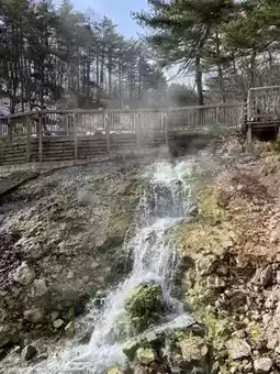 Located a little away from the center of Kusatsu Onsen. If you go all the way through the park, you'll find the open-air bath. The river that flows along the way is also a hot spring! Steam rises from the river. There are also footbath spots everywhere.