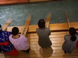 The purpose of Yumo is to stir the hot spring water using a wooden board about 180 cm long and 30 cm wide, so that the hot spring can reach a temperature suitable for bathing.