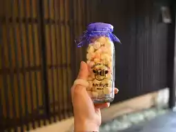 Pudding and cider, tempura, egg biscuits, and other things like hot spring manju, hot spring eggs, and rice crackers!