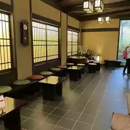 Once you enter the hotel, it is a traditional tatami floor, so you have to take off your shoes and put them in the shoe cabinet.