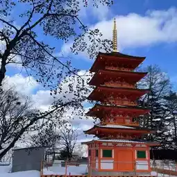 If you stroll from Kusatsu Onsen Bus Terminal to the Yubatake, you'll see plenty of retro architecture. The day I visited was 0°C, so it was sunny with a little snow. I was able to take some beautiful photos of the icicles. (^^)