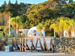 Within the area, there is a lighthouse you can climb, the Misaki Shrine perched on a cliff, and a camping area that looks like luxury glamping.