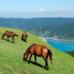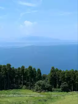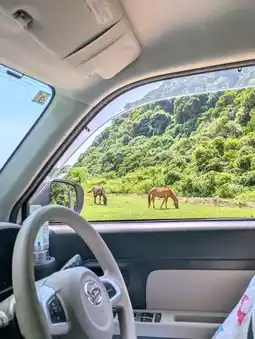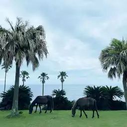 On clear days, you can even catch a glimpse of Kagoshima and Yakushima in the distance ✨. Escape the hustle and bustle of city life and immerse yourself in a serene moment surrounded by nature and horses❣️. This unique scenery is sure to leave a lasting impression on your heart.