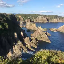 Kii Oshima has an area of about 9.68 square kilometers. Oshima is connected to Honshu by the Kushimoto Bridge, and there is a very small Naoga Island in the middle. There are two main attractions on this island, namely "Sea Kongo" and "Kashinozaki Lighthouse". The recommended route is at "Kashino Lighthouse Exit" ➡️ "Kashinozaki Lighthouse" ➡️ "Haikokugō" ➡️ "Kashino" ➡️ "Kushimoto Station".