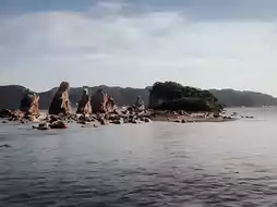 This Hashiguiiwa is a tourist attraction that I went to with others. It turns out that it is a famous tourist attraction in Wakayama, Japan! It is also a popular spot for photographers from all over the world to take photos. There are more than 40 rocks of different sizes neatly arranged in a straight line, which feels quite unique! When the tide recedes, visitors can walk up to the rocks and take a closer look! However, after the tide rises, tourists can only admire the rocks on the shore. 🪨Since we arrived at high tide, we didn’t have the chance to see them up close, which was a pity! The only way is to appreciate this unique place on the shore❤️