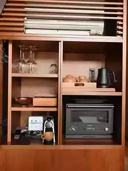 The first floor has two double beds, a TV, a walk-in closet, and a bathroom, and the second floor has a sofa bed and a TV, tableware, a simple kitchen, a capsule coffee machine, and a BALMUDA range, so I made coffee in my room☕️