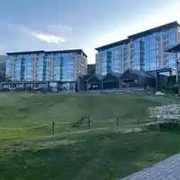The hotel and residence buildings are spacious, with a pool, hot springs, and a restaurant!