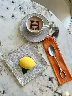 The atmosphere is full of luxury with Hermes cutlery and plates.