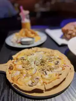 Onions, mushrooms, mussels, crab meat, lots of cheese🧀 It tastes very rich. The thousand island sauce enhances the seafood aroma. So many kinds of seafood are very rich. The crispy pie is not as thick and solid as usual
