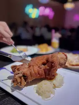 The shopkeeper patiently waited for us to take pictures and then took it into the kitchen to help us cut the pork skin into pieces. The crispy pork skin plus the soft and juicy meat and a little honey mustard would not taste too much🫣