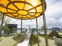 The Drainage Services Department built a landscaped platform on the roof of the pump house to implement the policy initiative of "single site, multiple uses". The landscaped platform, together with the adjacent seaside space, forms the Cha Kwo Ling Seaside Park, which covers an area of approximately 1.8 hectares and is equipped with pavilions, landscaped areas, lawns, children's play facilities and fitness facilities. The seaside space is a "pet sharing park" where citizens can bring their pets in.
