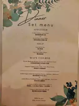 There are many main courses for you to choose from at night, you can add $38 to change the set, with soup and drink.