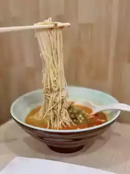 The peanut flavor of the soup is extremely fragrant and spicy. The thick soup is covered with each noodle 😆 The amount of noodles is quite large. With this soup, you don't need to order the ingredients