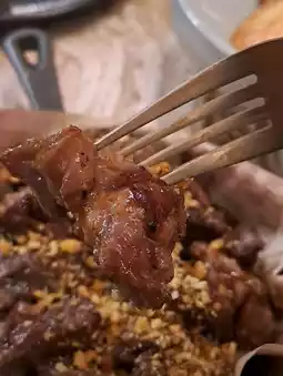 The thick cubes of beef tenderloin are tender and smooth, with a fragrant outer layer. The dried garlic is very fragrant, and the flavorful teriyaki sauce gives it a rich taste.