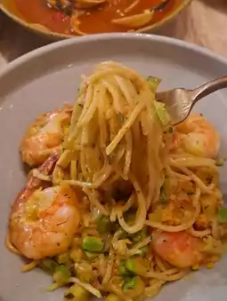 The salted egg yolk and prawns are big and tasty, with a rich flavor without being greasy.