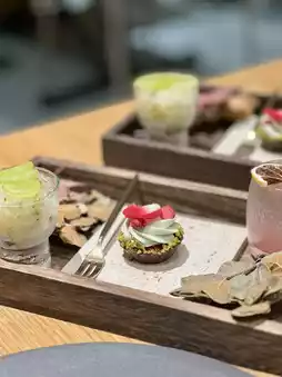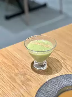The dessert presentation is super beautiful and very ceremonialπ The shopkeeper suggested eating shakes first, then pistachio crisps and finally drinking ginger and lemon beer! The shake is very heavy mint flavor with a faint lime flavor and pistachio crisp is very rich The tart base is made of chocolate to eat crispy in the middle and pistachio piecesπ€ͺ Finally, the ginger lemon beer ginger flavor is quite heavy The alcohol flavor is not heavy Overall quite fresh