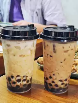 Taiwanese food is not missing 🧋 bubble milk tea, here's black sugar bubble milk tea in addition to 💰 affordable price, pearls are smooth enough, ☺️ black sugar hanging cup pattern IG-able, tea base milk fragrance rich 👍 not dead sweet 🧋. The milk flavor of black sugar pearl fresh milk🥛 is more prominent, it really has its own flavor🤤!