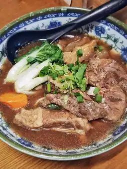 The 🥄 soup of the red-broiled beef noodles is amazing, it's rich and has a little herbal flavor, it feels very nourishing, 😋 One sip is like going to Taiwan. The 🥩 beef shank inside is also very tender and seasoned, definitely a work of heart.