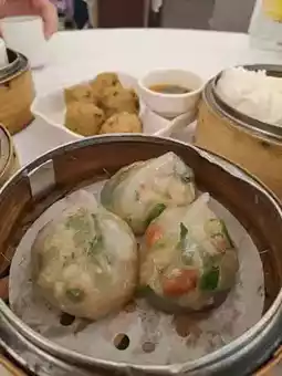 Shrimp seed siu-mai king, having tea and dim sum, relaxing and good atmosphere.
