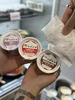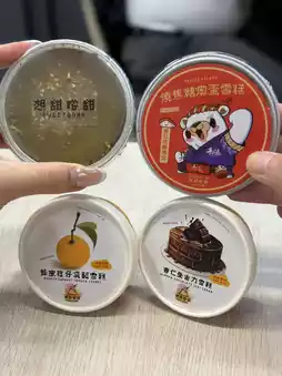 A variety of flavors available, including pistachio, burnt caramel custard, and almond chocolate.