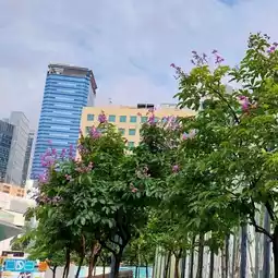 The park is also well landscaped, with green plants all around and occasionally flowers (I saw purple today, so pretty)