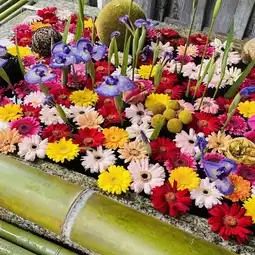 I went to see Kitano Tenmangu Shrine's limited-time flower water fountain.