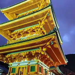 This is the three-story pagoda of Kiyomizu-dera Temple, one of Kyoto's most iconic tourist attractions.