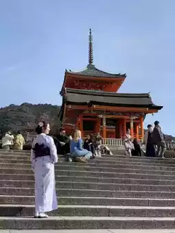 Personally, I think Kyoto is the perfect place to experience wearing a kimono ~ I think it's the place that suits kimono the best because it has a unique Japanese sensibility! The red color is so charming, so I think it's great for taking pictures :) Especially if you go on a day with good weather, you can enjoy such a peaceful scenery. I still can't forget the view I saw from up there 😭