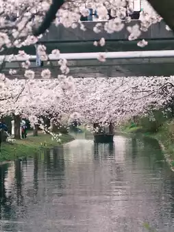 Even if you don’t take a boat, it’s still very nice to come here to see the cherry blossoms. There are two rows of cherry blossoms in full bloom by the lake. It’s magnificent. -