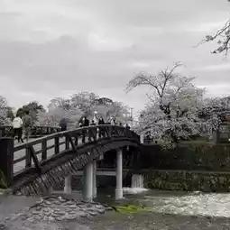 Finally arrived at Togetsukyo Bridge! It is also the filming location for the ending of Conan hhh. The bridge is not long. In fact, the scenery on the bridge is just average. It is not as beautiful as the comics. There are also fewer flowers nearby, but the park after crossing the bridge is nice! There are so many cherry blossoms planted, they should be quite beautiful in full bloom! Unfortunately it rained that day!