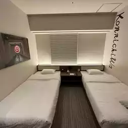 This time I stayed in a twin room. Although it was simple, it had all the necessary facilities and was perfect as a base for sightseeing. The large wall paintings were eye-catching.