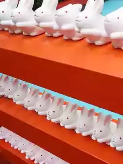 The rabbits at Okazaki Shrine have been treasured as messengers of the local deity since ancient times, as the area is a habitat for wild rabbits.