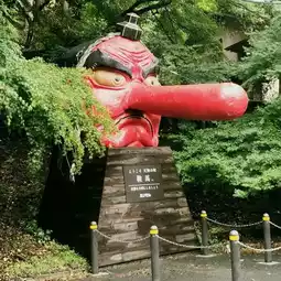 The trams on this route sometimes have scenic trains with seats facing directly out the windows, allowing visitors to enjoy the scenery, such as cherry blossoms in the spring and maple leaves in the fall. The most distinctive and well-known thing about Kurama Temple is the Tengu statue, with a long Tengu nose. You must have seen this shape when watching Japanese dramas and animations. Be sure to check it out!