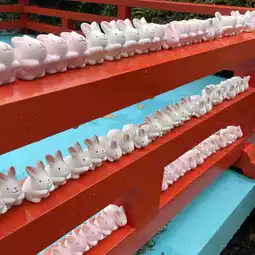 There are cute, unique little rabbits 🐇 everywhere in the shrine