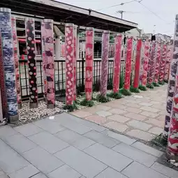 Randen Arashiyama Station was renovated in July 2013, and is now a beautiful photogenic spot with 600 poles decorated with colorful Yuzen.