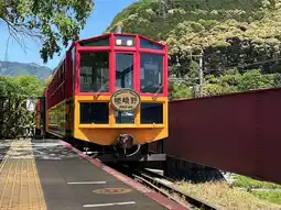 There are four stations to board: Torokko Saga Station, Torokko Arashiyama Station, Torokko Hozukyo Station, and Torokko Kameoka Station. Torokko Saga Station is the most convenient if you're heading from JR Kyoto Station.