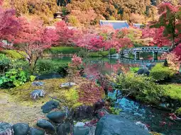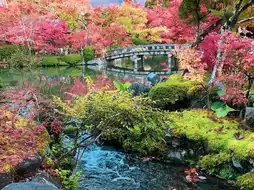 Eikando Temple or Zenrinji Temple is another famous temple for viewing red leaves during the red leaf season in Kyoto that is hard to find. The famous red leaf viewing spot of this temple is located in the Hojo Garden, which is beautifully decorated. There are small streams, ponds, and bridges connecting to the buildings. It is most beautiful during the autumn season when the lights are displayed at night. It is beautiful both during the day and at night.