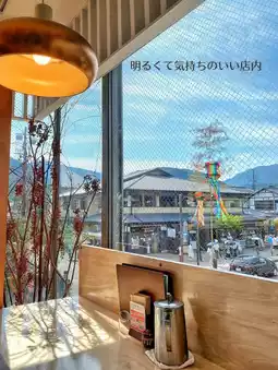 The Arashiyama streetscape beyond the window is lovely✨