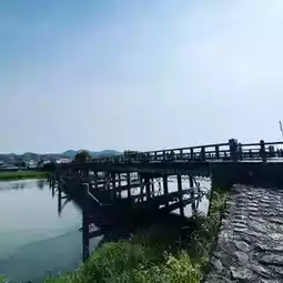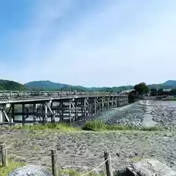 Togetsukyo Bridge is a bridge that spans between the left bank (north side) of the Katsura River and Nakanoshima Park, which is an island, and is entirely located in Ukyo Ward. The bridge is 155m long and 12.2m wide. The road is two lanes, with raised sidewalks on both sides. It is a bridge that symbolizes Arashiyama and a tourist attraction, and is also an important transportation route connecting both sides of the Katsura River.