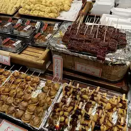 This is Kyoto's kitchen! Nishiki Market has been a popular market-like spot since long ago, and various ingredients are gathered there, but more and more interesting food is being created and there are plenty of recommended foods.