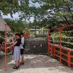 In terms of benefits, Aioi-no-Yashiro, a branch shrine of Shimogamo Shrine, is famous as a power spot for matchmaking. The two sacred trees beside the shrine are connected to one another along the way, and it is said to bring good luck in matchmaking, safe childbirth, childcare, and family harmony.