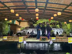 We arrived there early, we started queueing at around 10 and the line was really long . Officially they open at 11 but they started at 10:30am getting payments and giving numbers . We had an absolute blast, it was super fun catching the noodles, the ambience with the waterfall in the background is gorgeous. Noodles and especially the broth were tasty. Definitely recommend getting there early as the queue was very long when we get there it was raining andI heard they close sometimes if it starts raining hard so check the weather before you go!