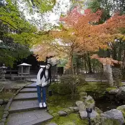 The further you go in, the more you can see a place that looks like a small courtyard. The temples and maple leaves complement each other and are reflected in the water. The bridge, mountains, temples, and water are like a picture.