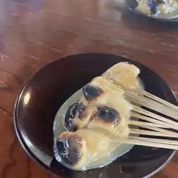 Kinako mochi is grilled and dipped in miso-flavored sauce, and I got the impression that one shop was sweet and the other shop had a strong miso flavor!