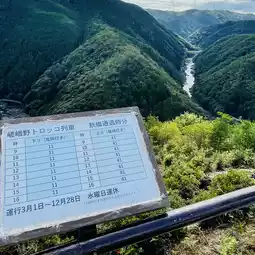 You can see the boats going down the Hozu River and the Sagano Trolley. There is a timetable that shows the passing times of the trolley, so I spent my time excitedly waiting for it to pass.