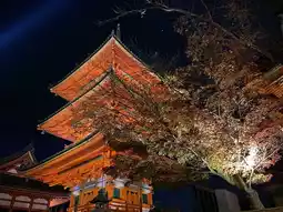 Kiyomizudera Temple in autumn is a beautiful picture. The maple leaves on the Qingshui stage are layered and colorful, contrasting with the surrounding mountains and forests. Visiting Kiyomizudera Temple at night is also a unique experience. After night falls, the Kiyomizu Stage will be lit up. Under the light, Kiyomizu Temple looks more mysterious and solemn.